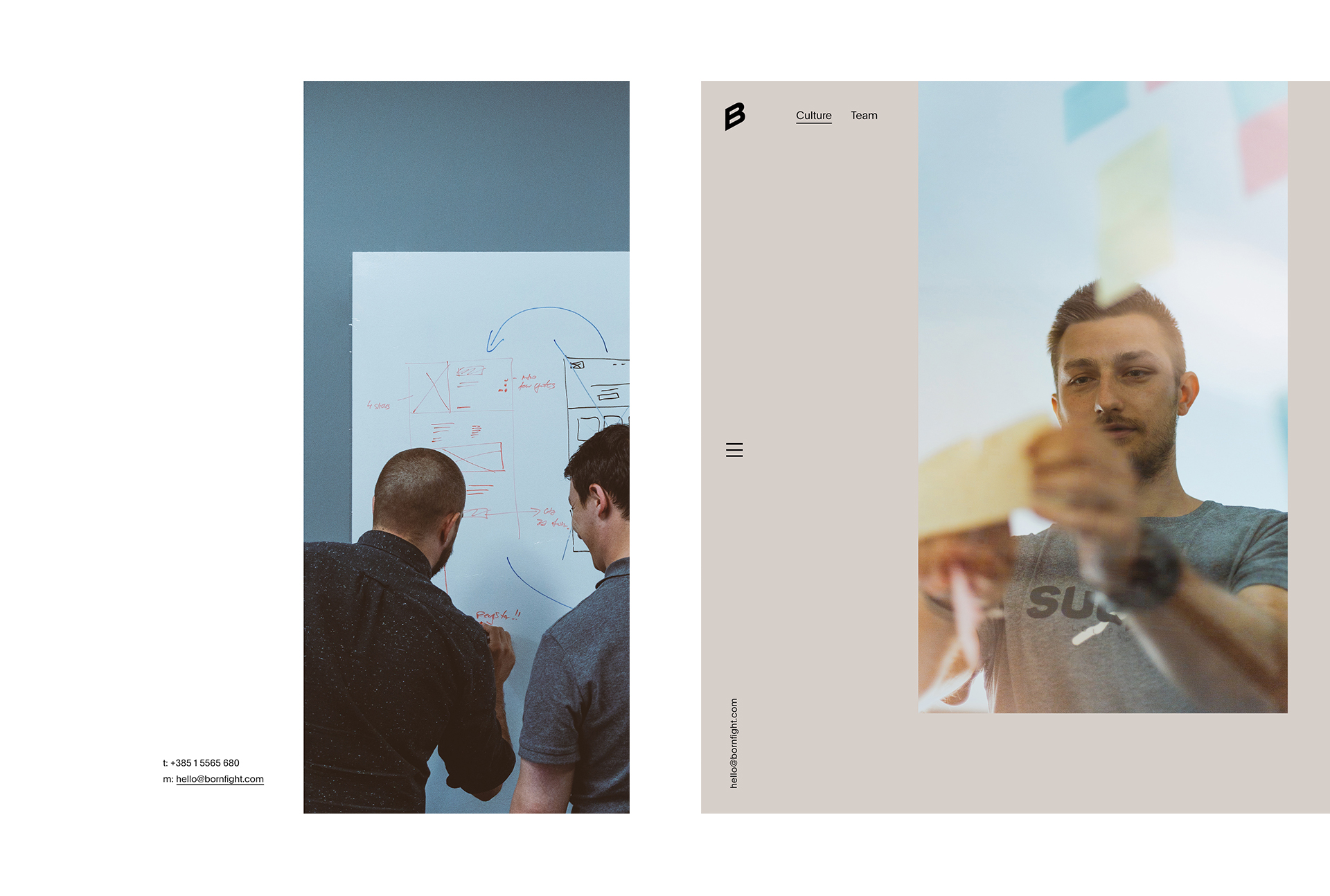 Bornfight is an award-winning design & development company. They were planning the launch of their website when they contacted us to create a photo style guide complementary to their brand identity. After setting the art direction, we shot all team portraits and office photos for their website. The website won the renowned Awwwards SOTD award.