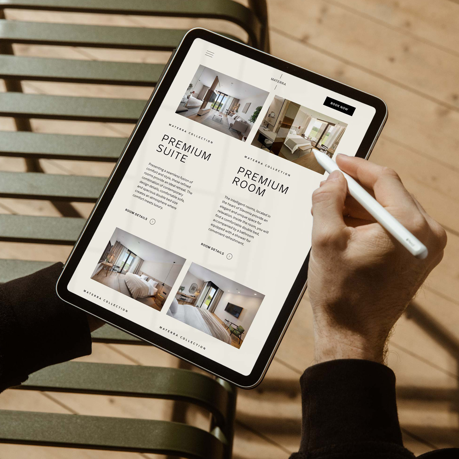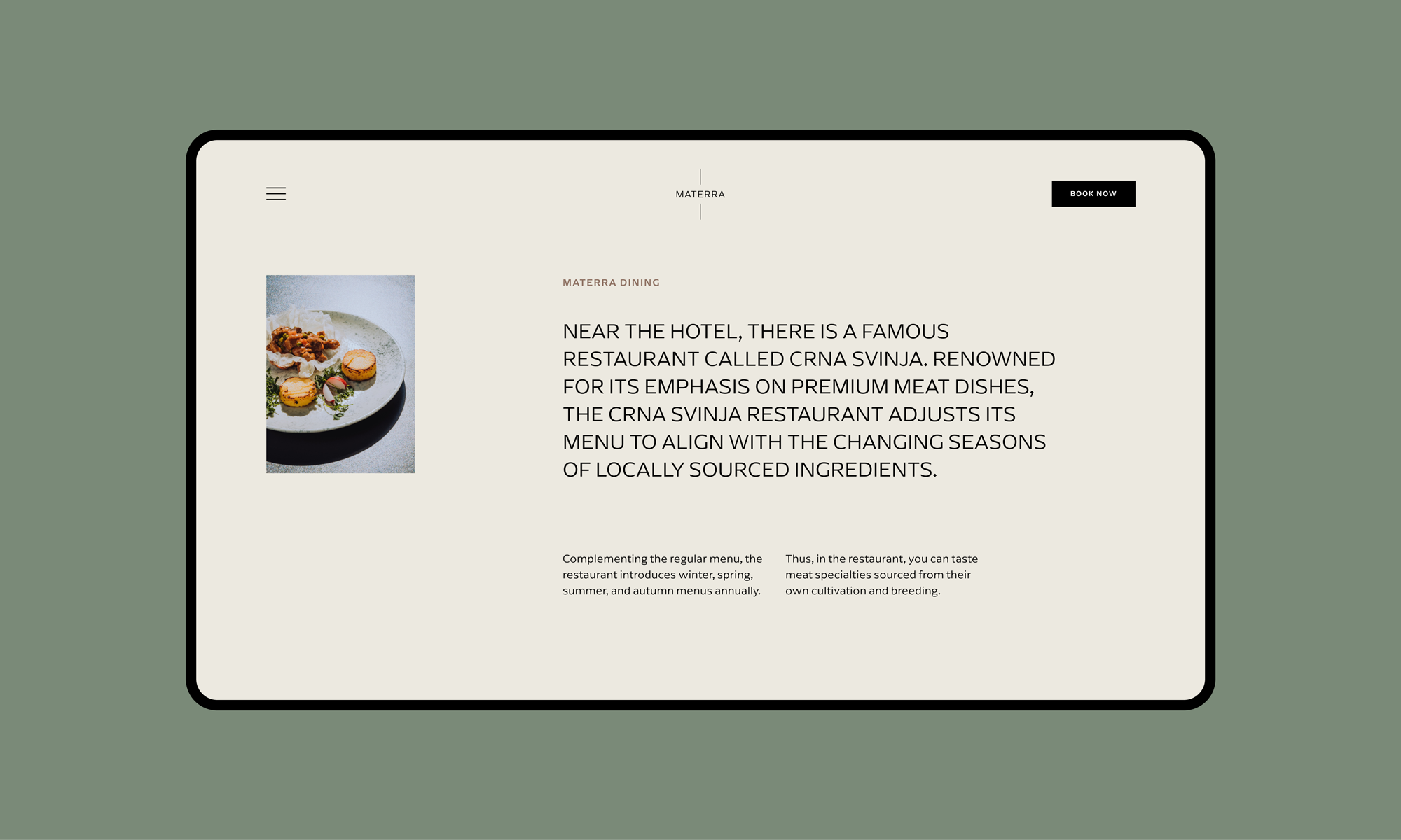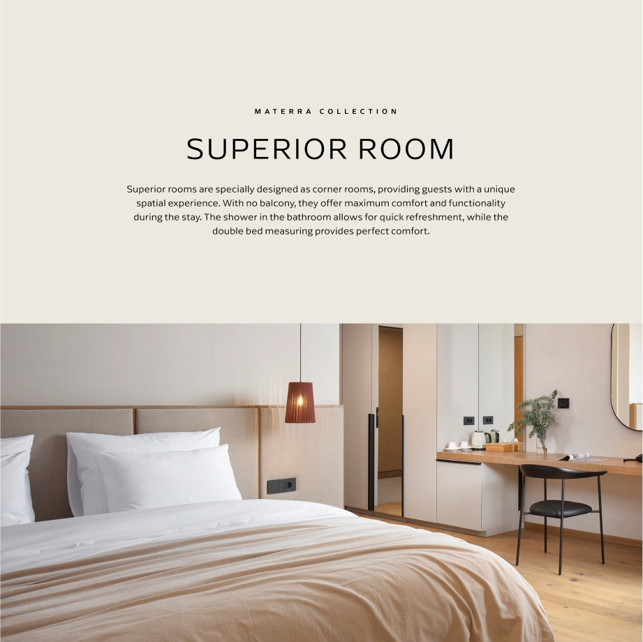 Studio Size designed the Materra brand for a wellness & wholeness hotel nestled in the vast plains of a rural area. The name Materra, a blend of ‘Mater’ (mother in Croatian) and ‘Terra’ (Latin for soil), symbolizes a nurturing sanctuary deeply rooted in the healing essence of nature. This countryside retreat stands out with a wide range of wellness activities inspired by Eastern traditions to help guests become more self-aware, resilient, and rejuvenated. Our branding emphasizes minimalism and balance to ensure the visual identity harmonizes with the hotel’s natural surroundings, architecture, and interior design, avoiding sensory overload.