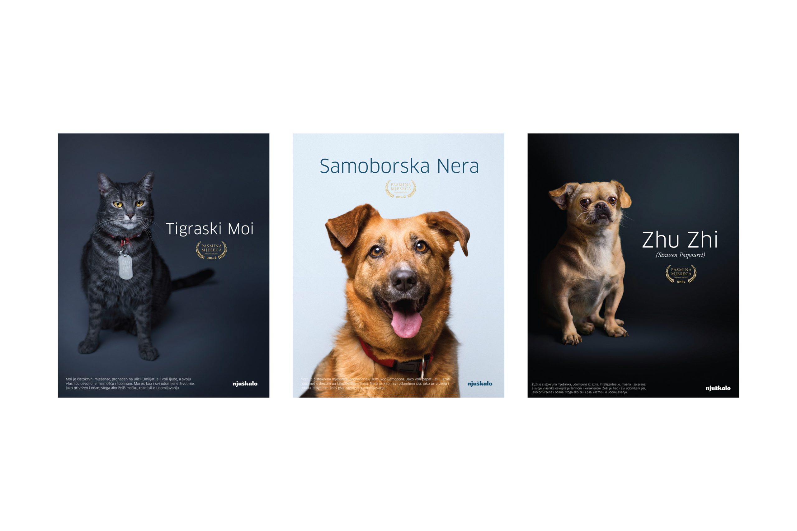 Njuškalo is the biggest online marketplace in Croatia, known by their dog mascot. Love for animals is integral to their company culture. A lot of employees are proud owners of adopted pets who come to work with them every day. To fight the perception that purchased purebreds are superior to adopted or mix-breed pets, we created a campaign called “Breed of the month.” It is a series of portraits made to celebrate their employees’ adopted and mix-breed pets. We used the pets’ names to create a fictional breed to send a message that every pet is a champion.