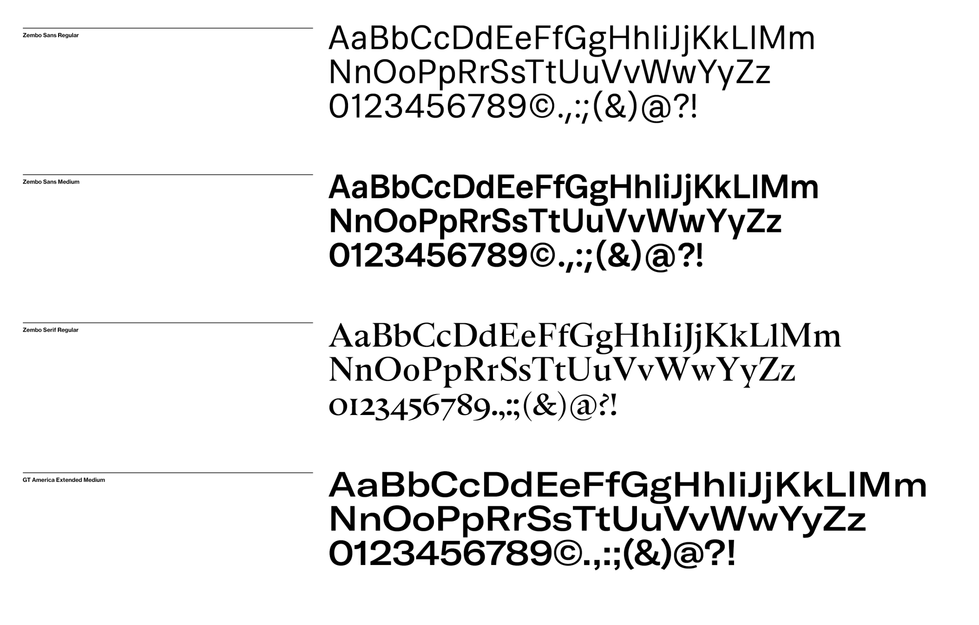 The custom Zembo fonts are combined with the GT America extended font.