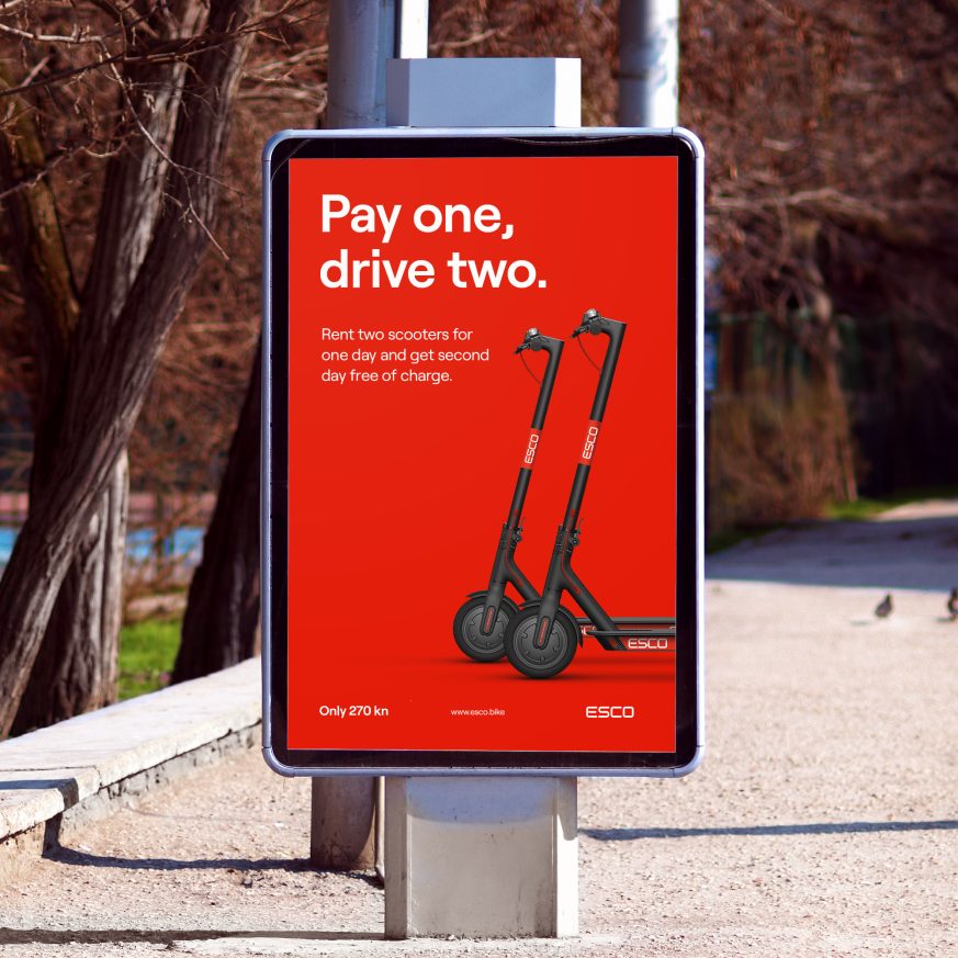 Studio Size created the ESCO brand, an affordable and eco-friendly way to explore cities. ESCO specializes in renting electric scooters and organizing city tours, providing a sustainable option for urban mobility. The brand name and design were tailored to appeal to both tourists and potential business partners, projecting an image of a trustworthy global entity. The project encompassed naming, design guidelines, web design, motion design, and a variety of print and digital assets. ESCO’s visual identity emphasizes modernity and reliability and incorporates vibrant colors and dynamic visuals to capture the energy and excitement of urban exploration. Additionally, user-friendly interfaces and engaging content are designed to enhance the customer experience.
