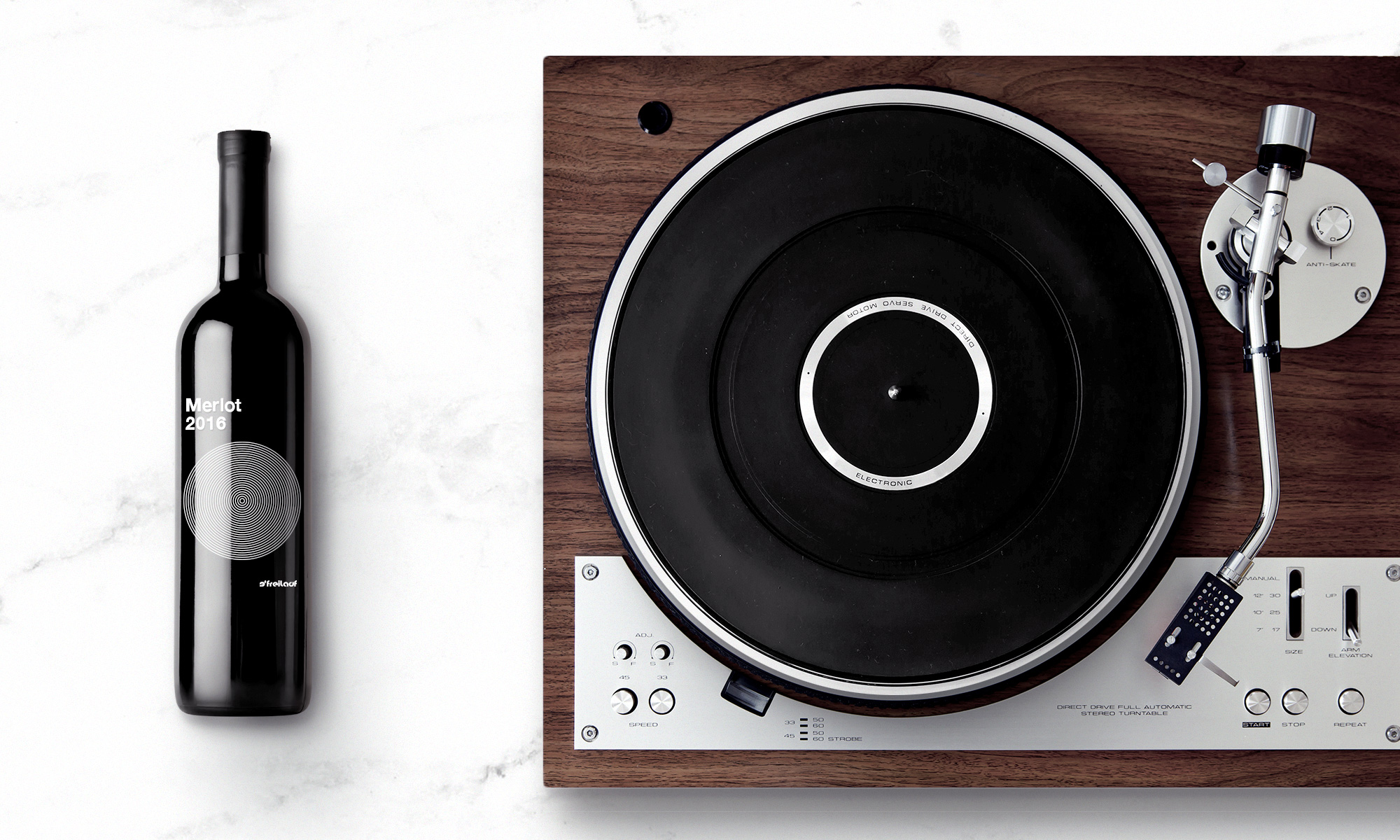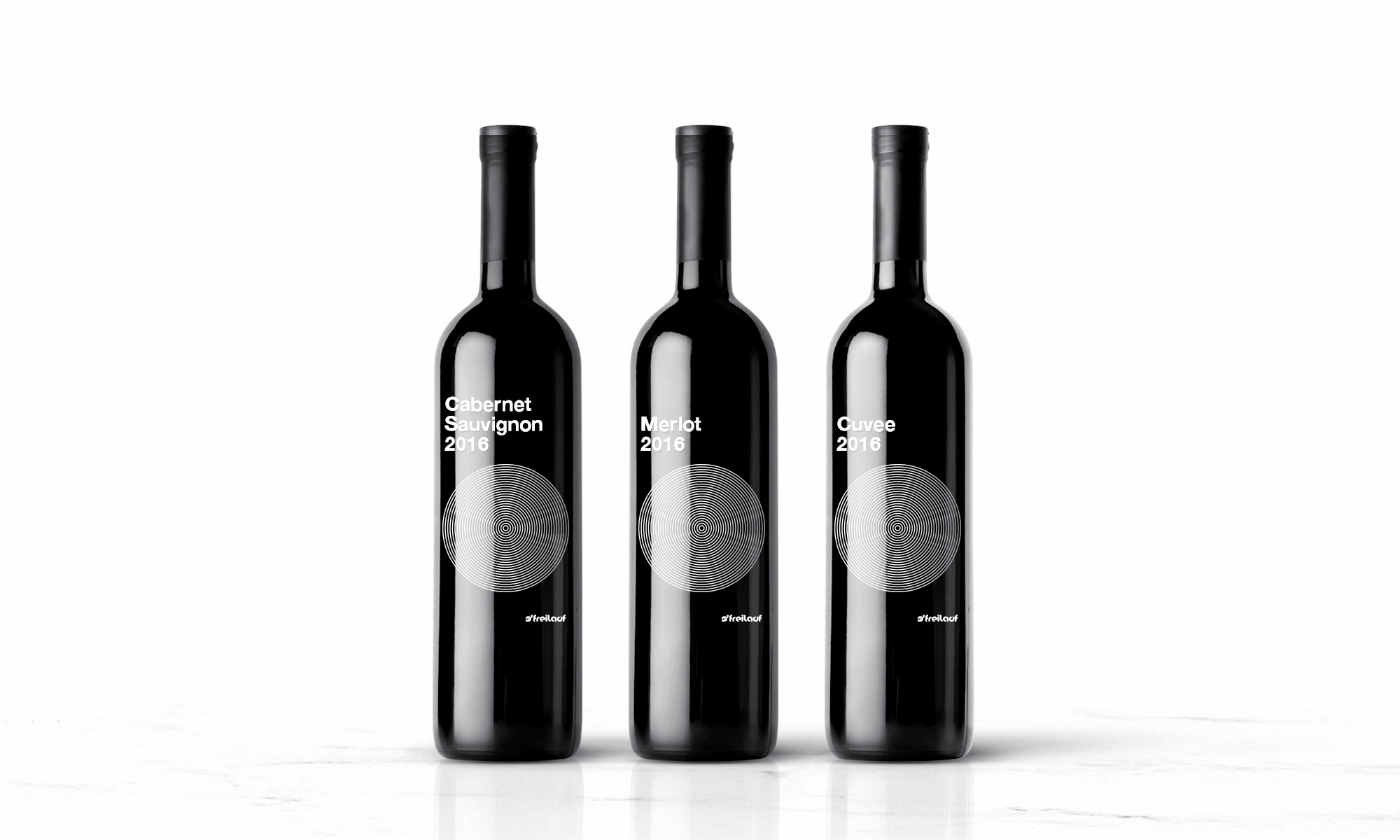 Freilauf is a wine brand owned by a well-respected, design-loving music DJ with a passion for hedonism and well-being. The task was to create a minimalistic, bold label that would transcend the philosophy behind the Freilauf meaning and lifestyle. The word “Freilauf” means freedom of movement. Our concept was to visualize it through the composition of multiple concentric circles, which put together form an optical illusion of endless rotation.