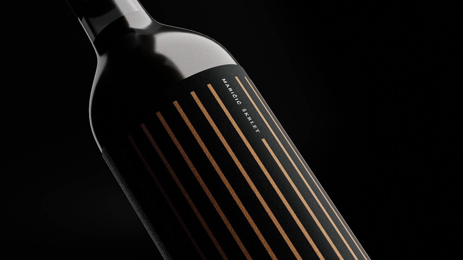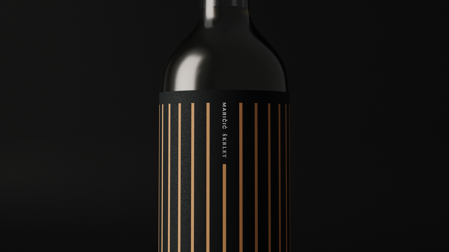 Studio Size designed the label for Maričić Škrlet, a limited edition wine available only at Maričić Villa. The exterior and interior of this luxurious holiday house are decorated with narrow flat strips of wood. The wine label design utilizes vertical slats as a distinctive element to form a visual connection between the wine and the place where guests can enjoy it.