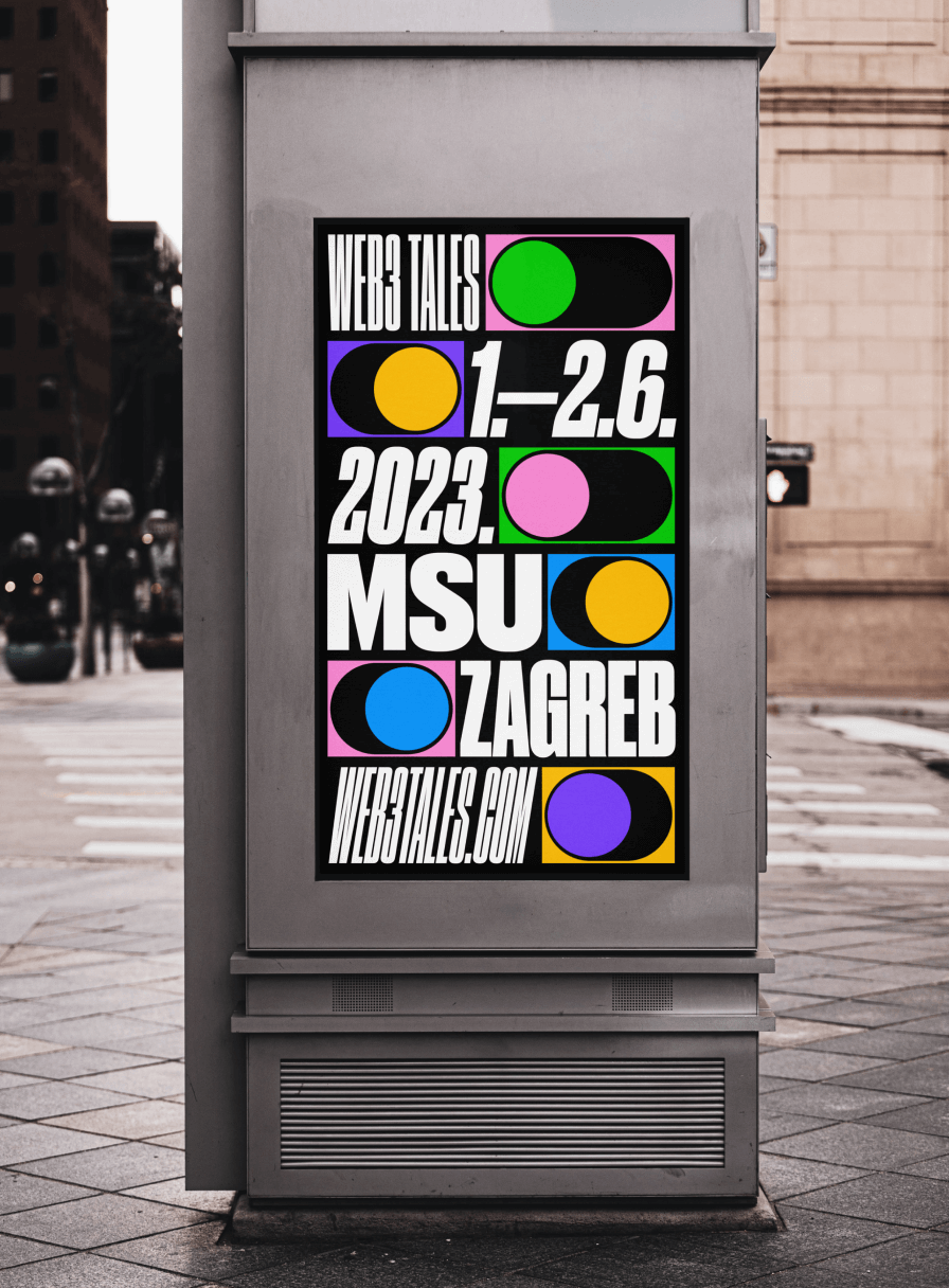 Studio Size designed a visual identity for Web3 Tales, a conference featuring some of the world’s brightest minds in Web3. The goal was to create an identity that reflects the event’s forward-thinking nature and generates excitement. Our approach centered on motion design, seamlessly integrating it with the core branding elements. Inspired by UI elements and Web3 interactivity, we developed a look that is both futuristic and engaging.